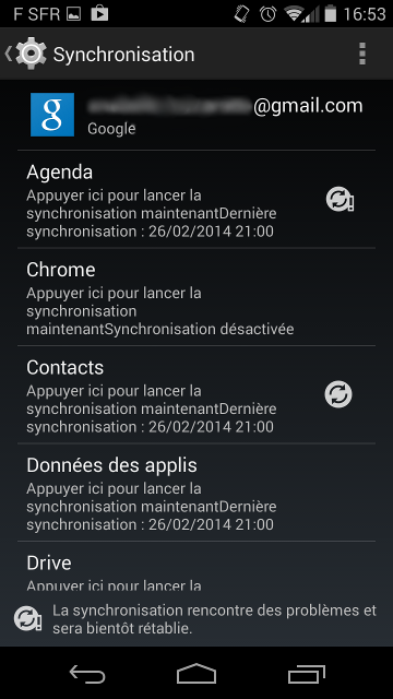 Une fois sur votre compte Google activé, rendez-vous dans les options du compte, rubrique « Données et synchronisation » pour sélectionner les options de synchronisation. Cochez alors les cases « agenda, détails des contacts, Gmail ».Comme vous pouvez le voir, d’autres options de synchronisations sont possibles comme Chrome ou encore Drive. Pour le navigateur Chrome, cela vous permet entre autres de retrouver vos favoris aussi bien sur le téléphone que sur l’ordinateur. À vous de synchroniser ce que vous pensez utile de conserver ou non.